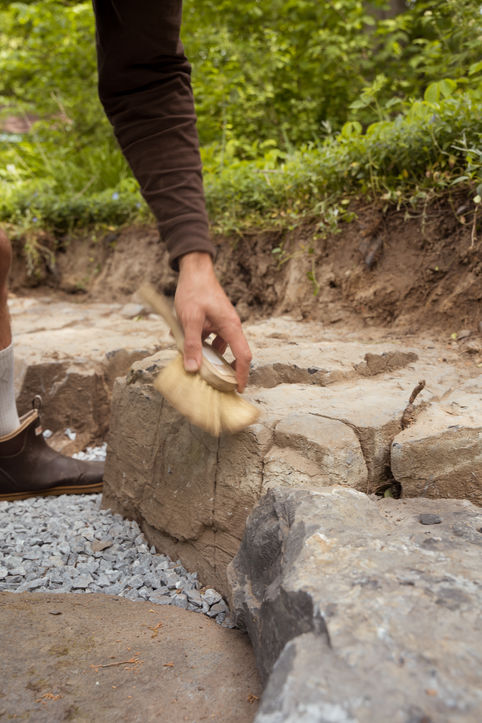 What started as a retaining wall and stair project evolved into something even more special when we uncovered a stunning natural ledge hidden beneath the surface. Rather than covering it, we adjusted the design to highlight its raw beauty, allowing it to become a defining feature of the space.